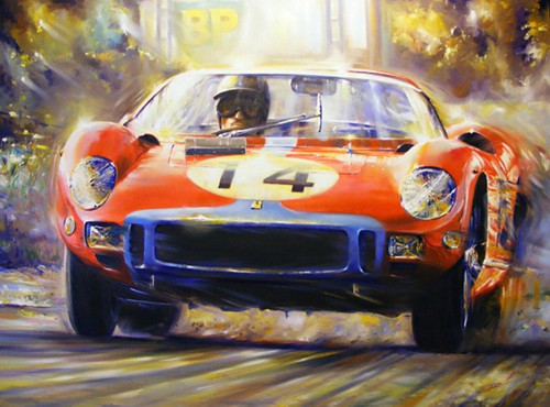 Graham Hill in the Maranello Concessionaires Ferrari 330P, flat out at Le Mans 1964.